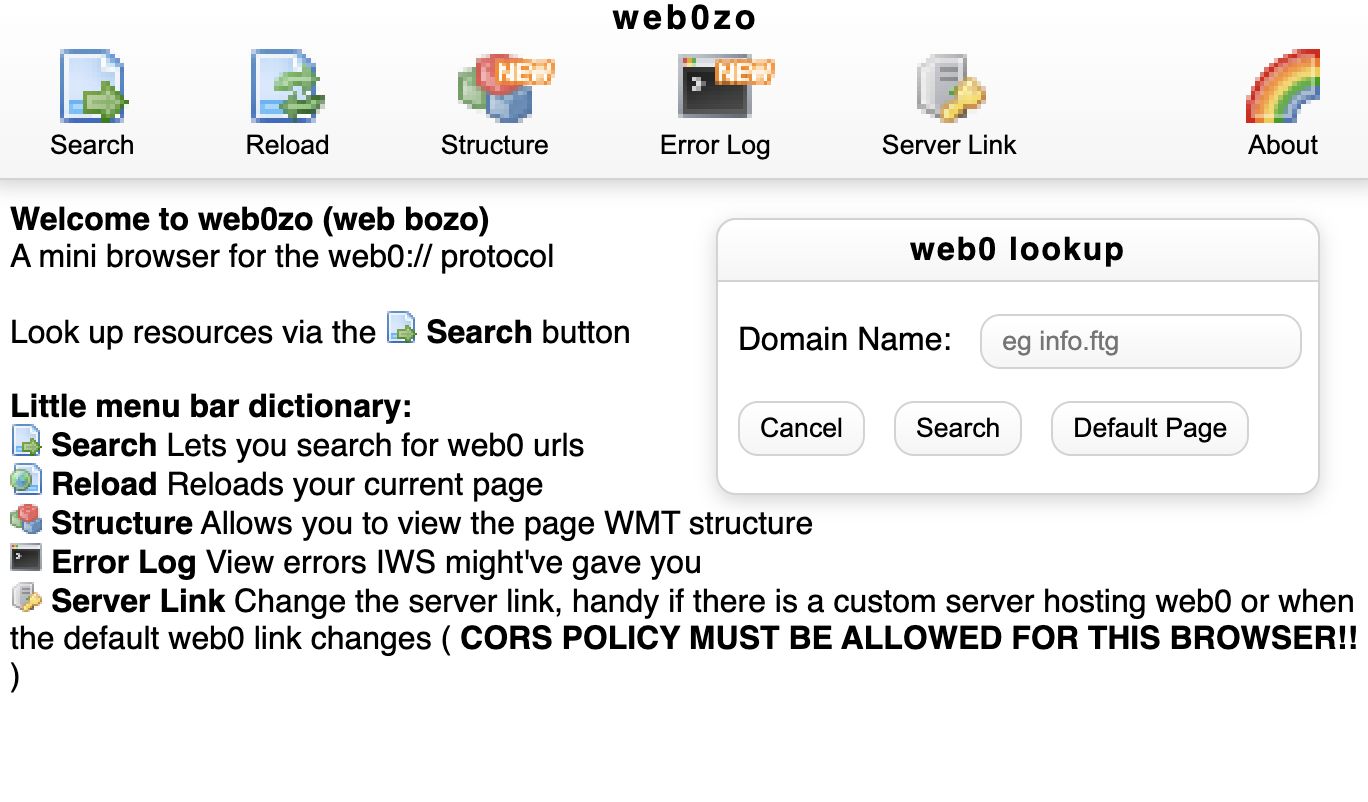 1. web0zo, The webbrowser for web0 which has support for WMT & IWS